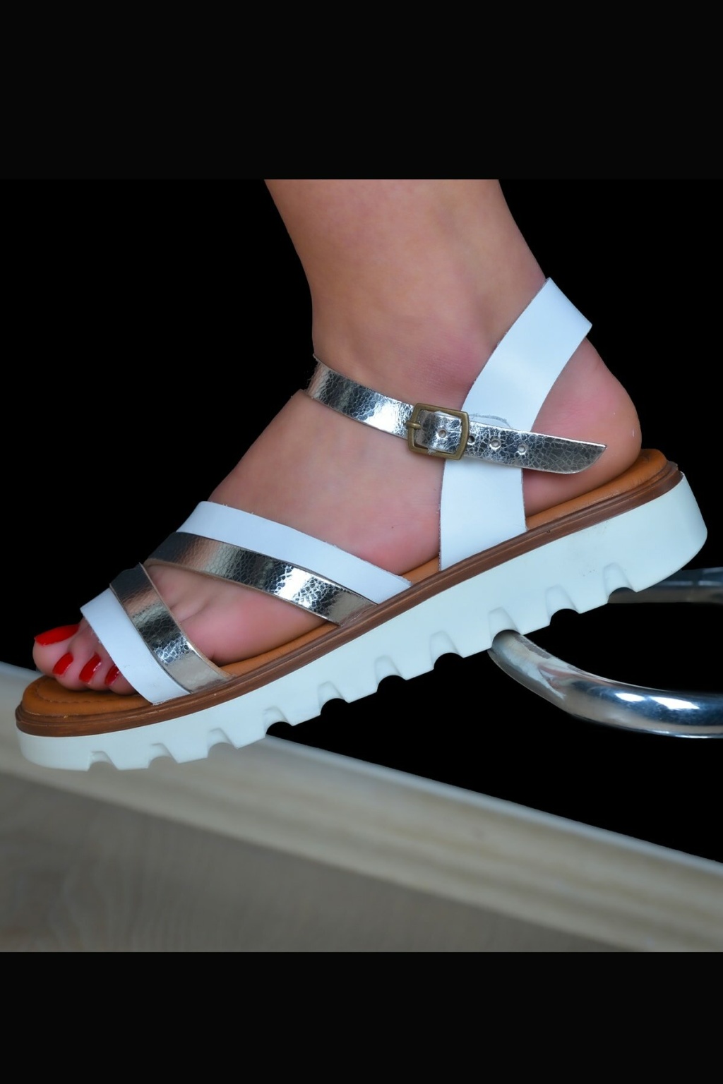 BEYAZ- PARLAK GRİ RENK ORTOPEDİK SANDALET
